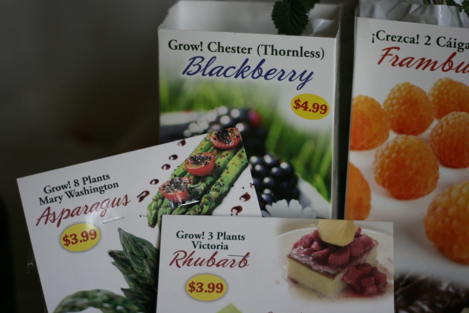 we bought some asparagus and rhubarb, a couple of thornless blackberries, and then there's the golden raspberry from my mama. hopefully all of which will be planted this weekend, along with a new pear tree and plum tree. papa will be busy playing with the FD pipes and drums band what with it being Saint Pat's and all, but there are always opportunities to squeeze in some family garden and yard work.